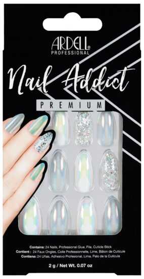 Luxusní sada Ardell Nail Addict Premium obsahuje 24 nehtů, 2gr.lepidlo, malý pilník a zatlačovadlo na nehty.