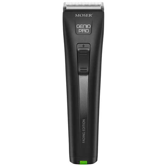 MOSER Genio Pro Fading Edition 1874-0053 – profesionální akumulátorový strojek. Nový excelentní, spolehlivý a velmi výkonný profesionální střihací strojek. Díky snadno výměnným Li-ion akumulátorům s vysokou kapacitou z něj dělají naprosto nejpraktičtější a nejvýkonnější střihací strojek na trhu! speciální špičková integrovaná střihací hlavice Fading Blade s nastavitelnou výškou střihu již od 0,5 do 2 mm a šířkou střihu 46 mm, snadno odnímatelná – pro rychlejší výměnu a snadnější údržbu, je vhodná pro tvorbu moderních krátkých účesůnonstop provoz – dva akumulátory s nejnovější lithium-ionovou technologií s výdrží 105 min a dobou nabití pouze 80 min Vám zajistí nepřetržitý provozsnadné vyjmutí a výměna akumulátoru, 3x delší životnost baterií a bez paměťového efektu !silný DC motor s 5300 ot. a elektronickou kontrolou konstantní rychlostinový, moderní design, který ctí ergonomii super nízká hmotnost – pouze 280 gvelmi tichý chod motoruLED dioda, která sama oznámí, kdy je třeba vyměnit baterierozměry: 180 x 47 x 42 mmpříslušenství: 2 Li-ion akumulátory, nabíjecí stojánek, plastové přídavné hřebeny 3, 6, 9, 12 mm, čistící štěteček a olejnička se speciálním olejem na střihací hlavicevyrobeno v Německu