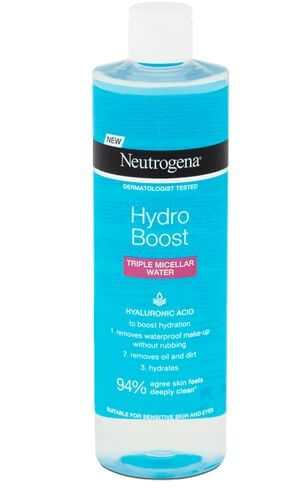 Neutrogena Hydro Boost micelární voda 3v1 má jedinečné složení ze tří micelárních molekul, které je podpořeno kyselinou hyaluronovou. Každá micelární molekula je zaměřena na jiné účinky: odstraňuje i voděodolný make-up, čistí pleť a zanechá pokožku intenzivně hydratovanou.
