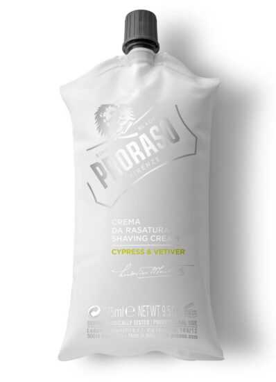 Proraso Shaving Cream Cypress and Vetiver – krém na holení s vůní cypřiše a vetiveru Chrání, zjemňuje a zabraňuje podráždění. Klasická receptura společnosti Proraso byla obohacena o vzácné oleje aby se získalo bohaté a konzistentní složení vhodné pro klasickou žiletku. Určené k ochraně pokožky při holení a pro dosažení hladšího oholení. Alkalické pH mýdla podporuje absorpci vody v bradě, která je okamžitě měkká a poslušnější při holení. vhodné pro klasickou žiletkuvůně: svěží bergamot s náznakem cypřiše, harmonické jádro cedru a vetiveru vrcholí v souhře jantaru a pižma Použití: Krém navlhčete vodou a kruhovými pohyby rozložte pomocí štětky nebo prstů na celou oblast kterou chcete oholit. Následně pokračujte v holení. Objem: 275 ml
