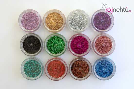 Sada 12-ti kusů glitrového zdobícího prachu. Ideální na gelovou a akrylovou modeláž.
